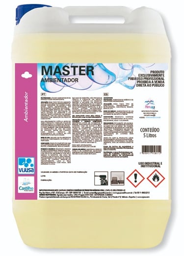 De grande persistência no ambiente, MASTER contém componentes que fornecem um aroma simultaneamente fresco e sofisticado. Para todo tipo de ambiente nos quais se deseja experimentar um aroma agradável de limpeza e bem estar, sendo indispensável em restaurantes, discotecas, salas de cinema, bancos, etc.